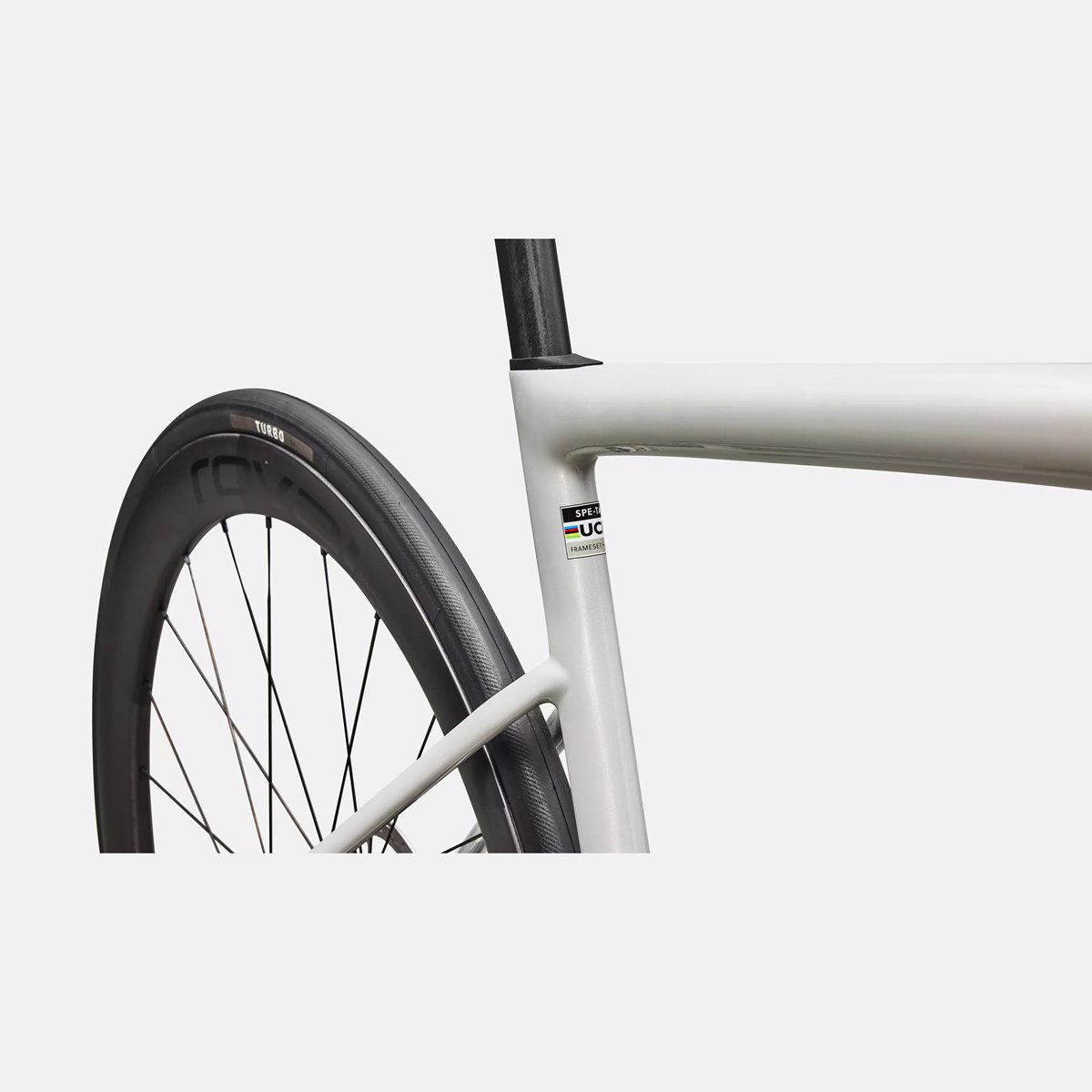 - MINIMUM WEIGHT, MAXIMUM AERODYNAMIC: For the S-Works Tarmac SL8, we learned from the Aethos, making it meet the UCI's minimum requirements while being maximally aerodynamic. The team has built a frame with an unprecedented low weight of 685g - 15% lighter than the Tarmac SL7 and lighter than any other bike on the World Tour.* Compared to the Aethos, the down tube, seat tube and rear of the bike are now a lot lighter. The shape of the frame carries the weight so efficiently that additional carbon stiffness layers are no longer necessary. *Except, of course, that time Kasper Asgreen rode a Tour stage with a 585-gram Aethos frame.