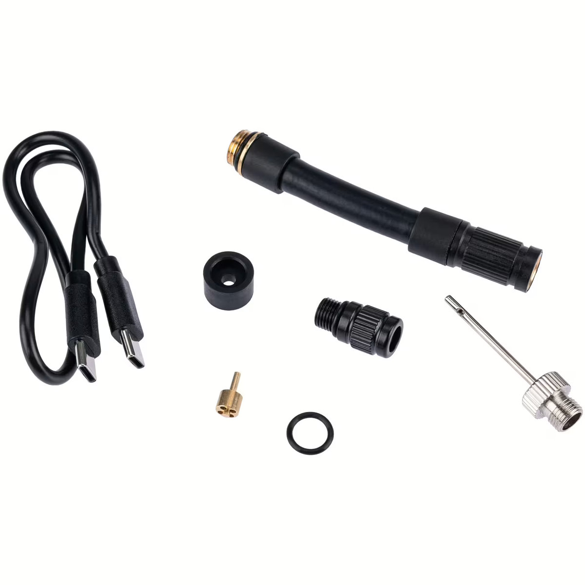 CONTEC Minipomp accu-voeding “Air Tronic Mini 8,3 bar / 120 psi, voor Schrader-, Presta en Clik ventielen, incl. alle adapters, afmetingen (L x B x H): 70 x 56,5 x 31 mm, ca. 125 g SB-verpaktmet digitaal display, automatisch oppompen dankzij vooraf instelbare bandenspanning, lichte kunststof behuizing, met flexibele binnenband, incl. acculaadindicatie, ca. 120 sec. voor het oppompen van 700*25C buitenbanden van 0 – 120 psi, acculading vult tot 2 banden van vergelijkbare grootte, accucapaciteit 450 mAh, laadtijd ca. 30 minuten i.› zwart