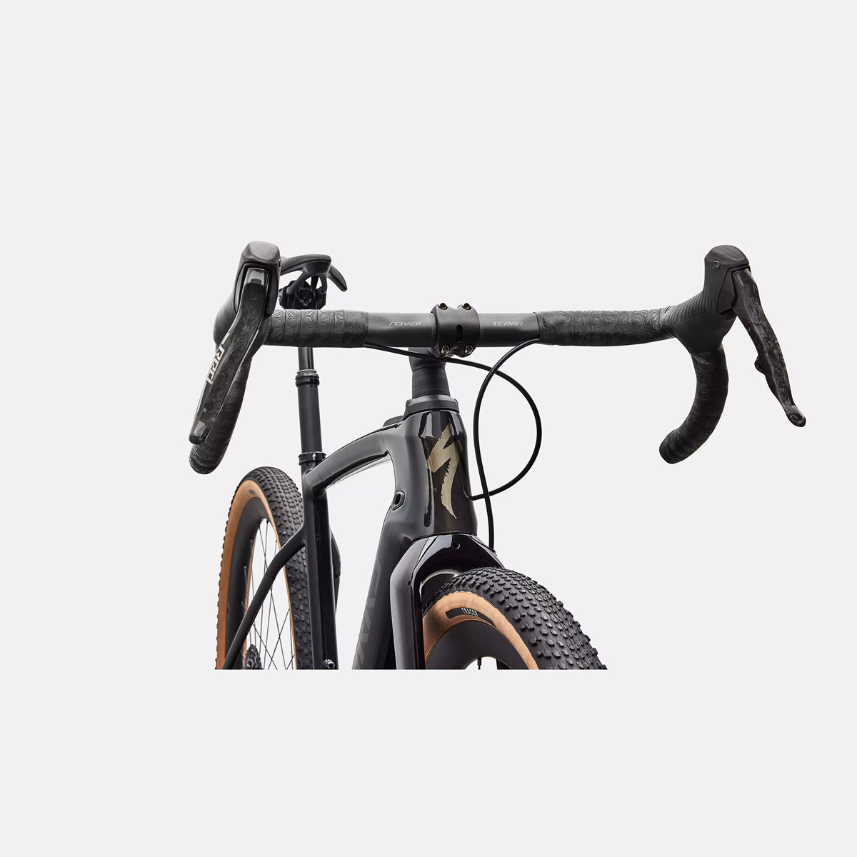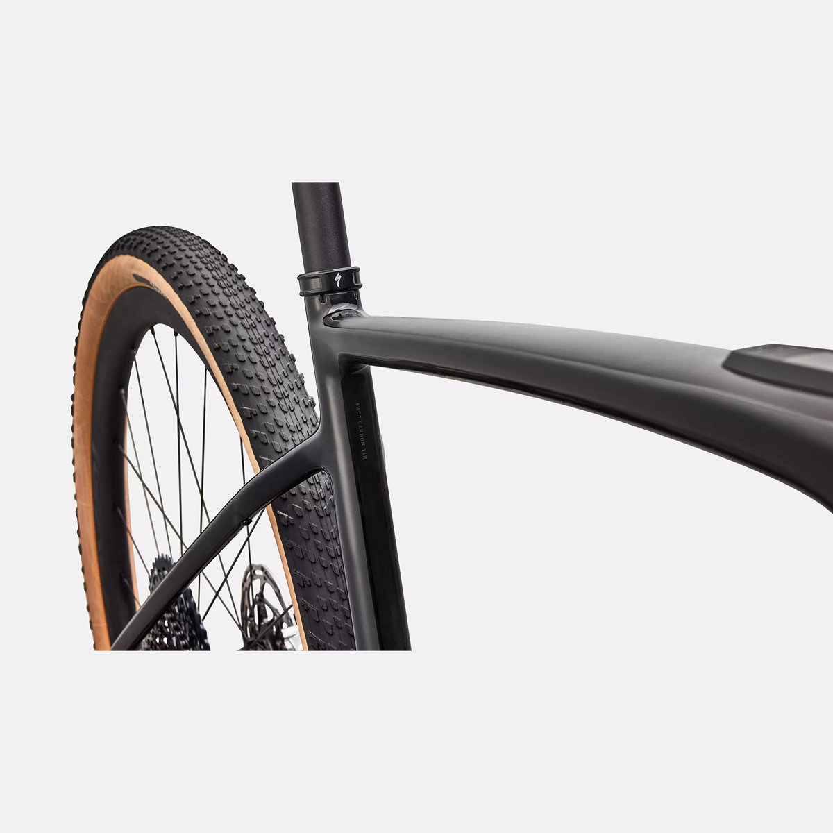 Roval Terra CLX II wielen: Deze extreem lichte en stijve carbon wielen zijn standaard uitgerust met 700x50c Tracer TLR banden, maar het frame biedt zelfs ruimte voor 29″ x 2.2 banden.