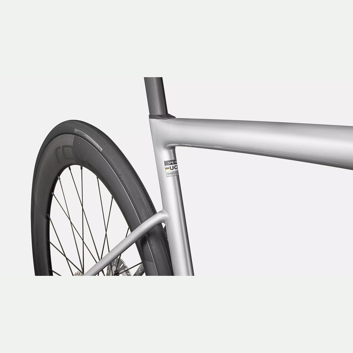 - MINIMAAL GEWICHT, MAXIMAAL AERODYNAMISCH: Voor de Tarmac SL8 hebben we geleerd van de Aethos, waardoor hij voldoet aan de minimumeisen van de UCI en tegelijkertijd maximaal aerodynamisch is. Het team heeft een frame gebouwd met een ongekend laag gewicht van 685 gram – 15% lichter dan de Tarmac SL7 en lichter dan alle andere fietsen in de World Tour.* Ten opzichte van de Aethos zijn de onderbuis, zadelbuis en achterkant van de fiets nu een stuk lichter. De vorm van het frame draagt het gewicht zo efficiënt dat extra stijfheidslagen van carbon niet meer nodig zijn. *Behalve natuurlijk die keer dat Kasper Asgreen met een Aethos-frame van 585 gram een Tour-etappe reed.