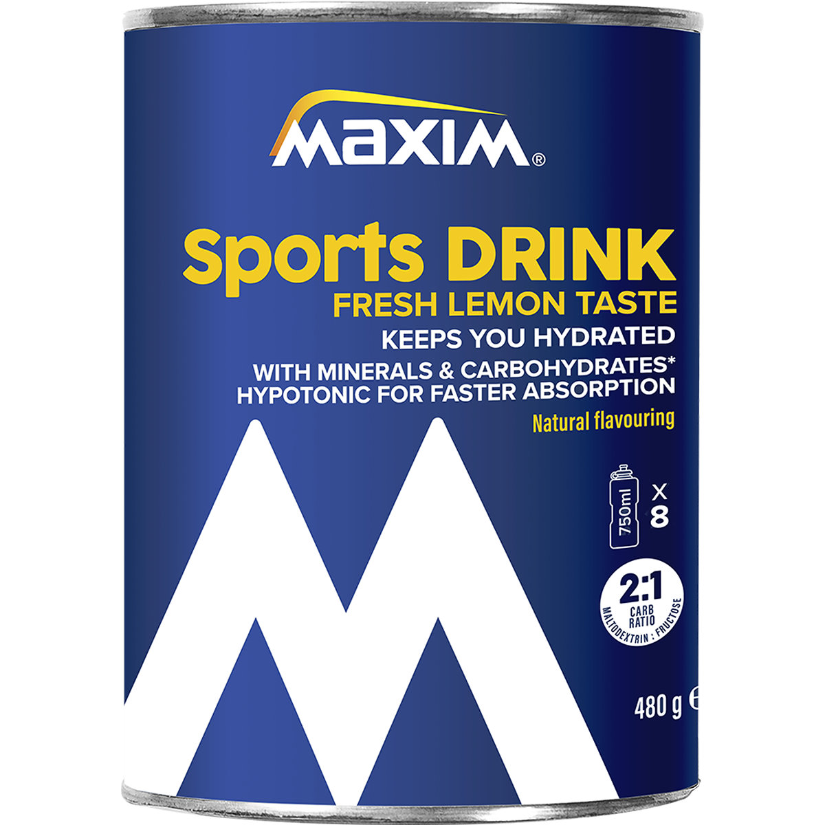 Maxim Sports drink is een gemakkelijk in water oplosbaar poeder voor het bereiden van een lekkere hypotone sportdrank. Het levert de optimale hoeveelheid koolhydraten en mineralen (= electrolyten) die nodig is tijdens het sporten. Maxim Sports drink bevat van alle sportdranken de meeste mineralen en electrolyten.